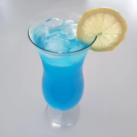 Squeeze the juice of half a lemon into the glass and also add the vodka and Blue Curaçao. Not using fresh lemon juice? Then count on 25 ml per person.